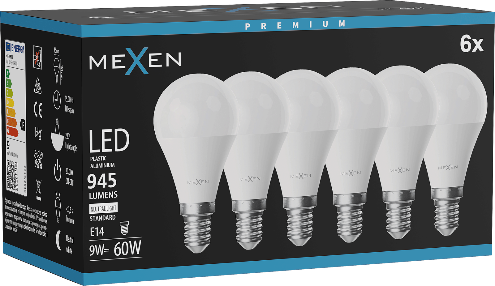 Mexen Nova 6x LED-lamppu E14, G45, 9W, Neutraali - 4000K, 945 lm - L101-E14-0940-01x06