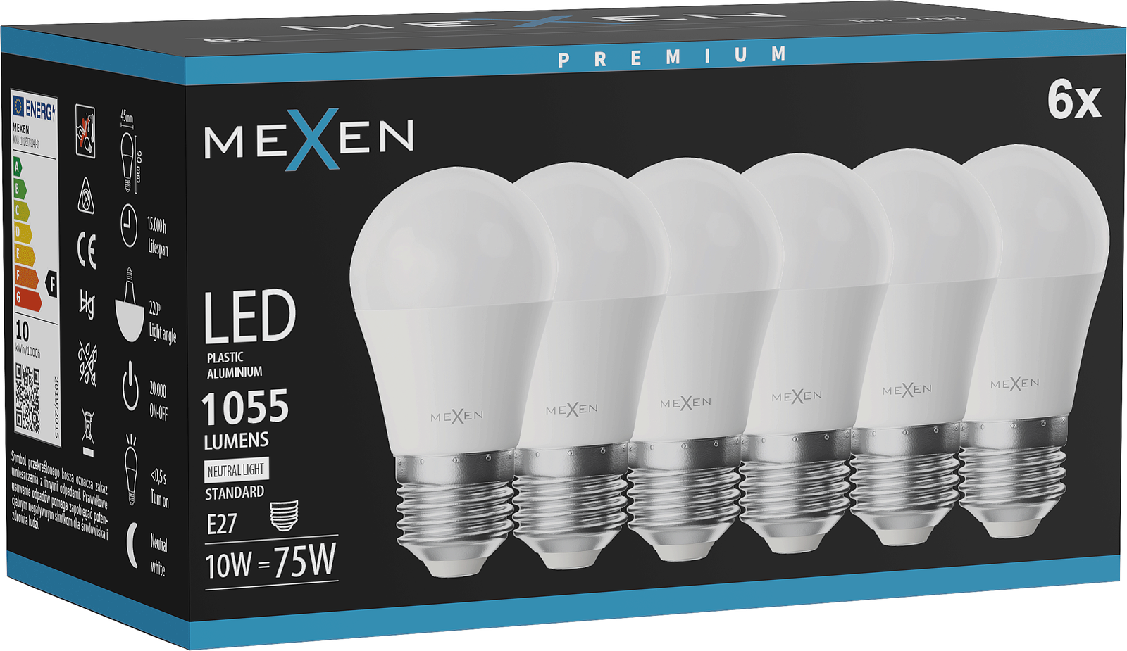 Mexen Nova 6x LED-lamppu E27, G45, 10W, Neutraali - 4000K, 1055 lm - L101-E27-1040-01x06