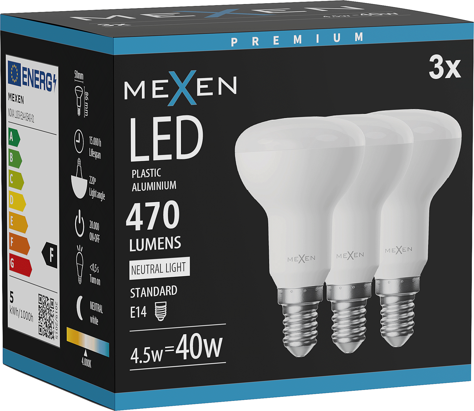 Mexen Nova 3x LED-lamppu E14, R50, 4,5W, Neutraali - 4000K, 470 lm - L103-E14-0540-01x03