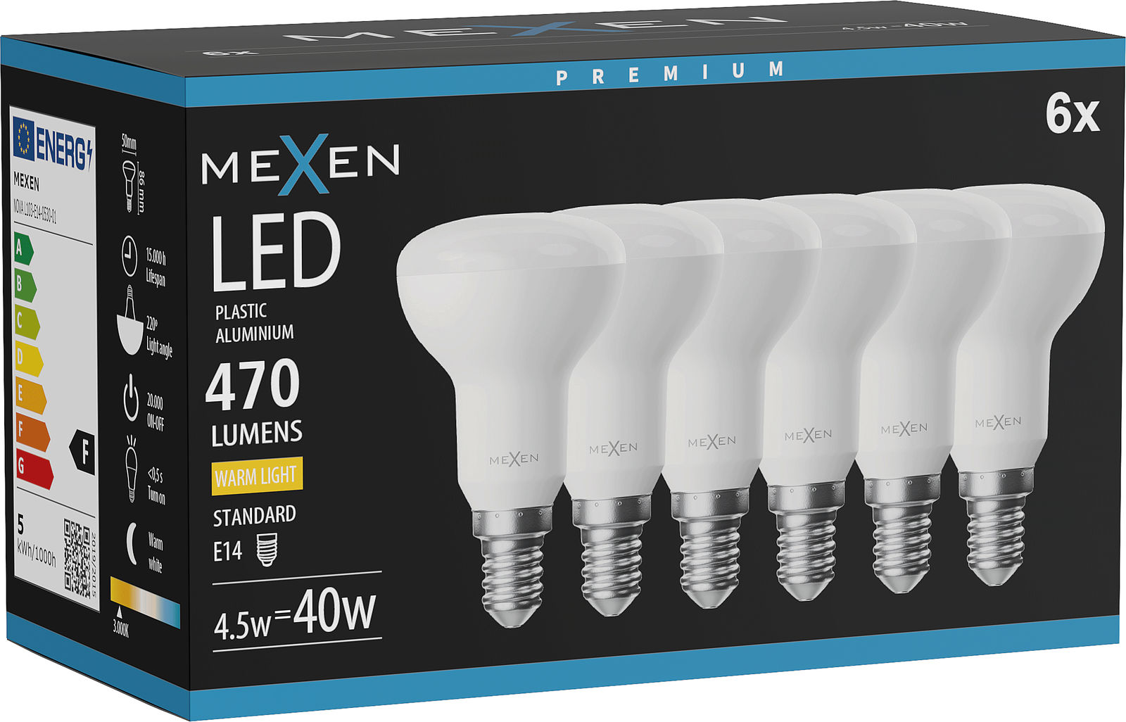 Mexen Nova 6x LED-lamppu E14, R50, 4,5W, Lämmin - 3000K, 470 lm - L103-E14-0530-01x06