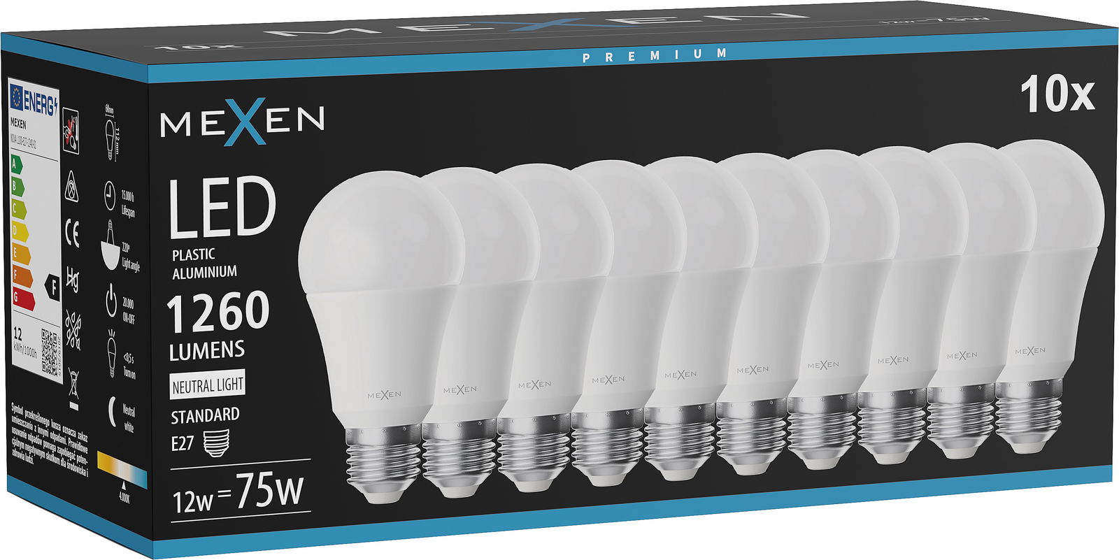 Mexen Nova 10x LED-lamppu E27, A60, 12W, Neutraali - 4000K, 1260 lm - L100-E27-1240-01x10