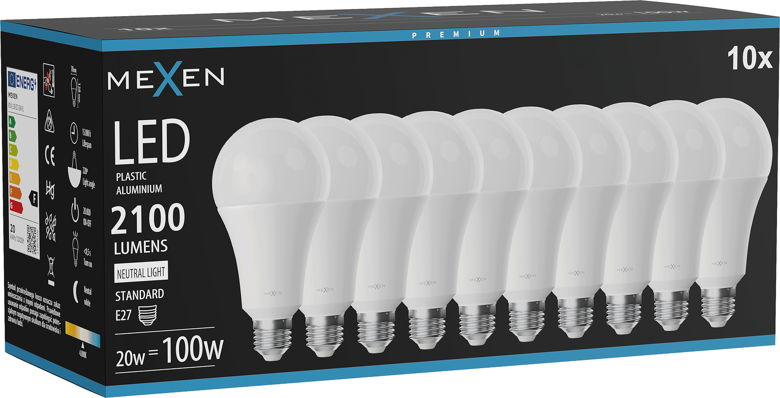 Mexen Nova 10x LED-lamppu E27, A70, 20W, Neutraali - 4000K, 2100 lm - L100-E27-2040-01x10