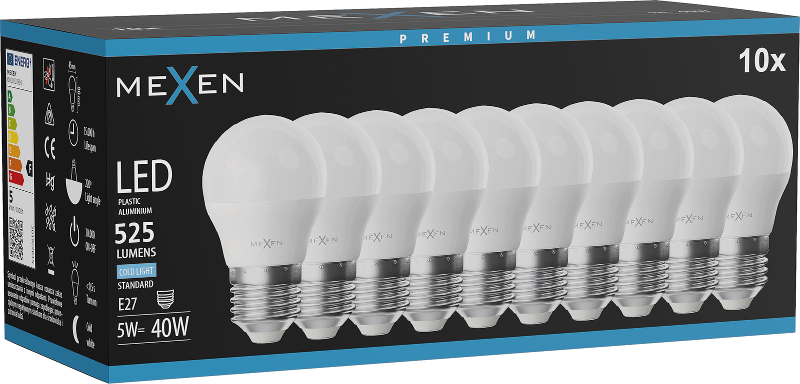 Mexen Nova 10x LED-lamppu E27, G45, 5W, Kylmä - 6500K, 525 lm - L101-E27-0565-01x10