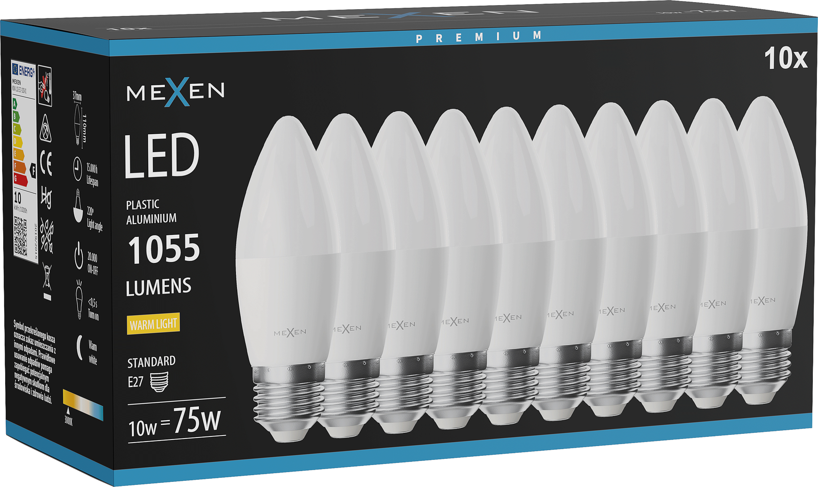 Mexen Nova 10x LED-lamppu E27, C37, 10W, Lämmin - 3000K, 1055 lm - L102-E27-1030-01x10