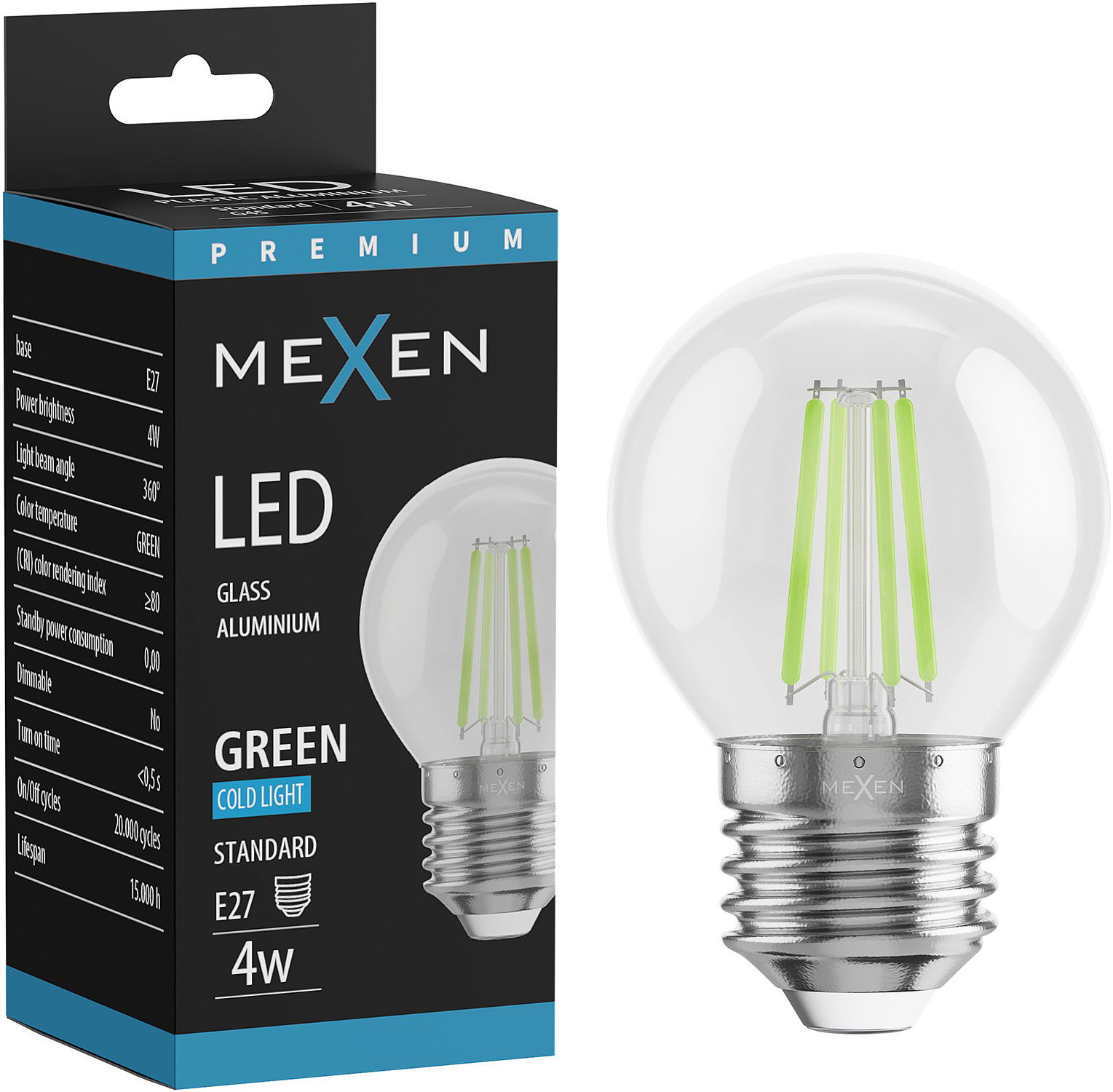 Mexen Vintis LED-filamenttilamppu E27, G45, 4W, 55 lm, vihreä - L156-E27-04XX-46