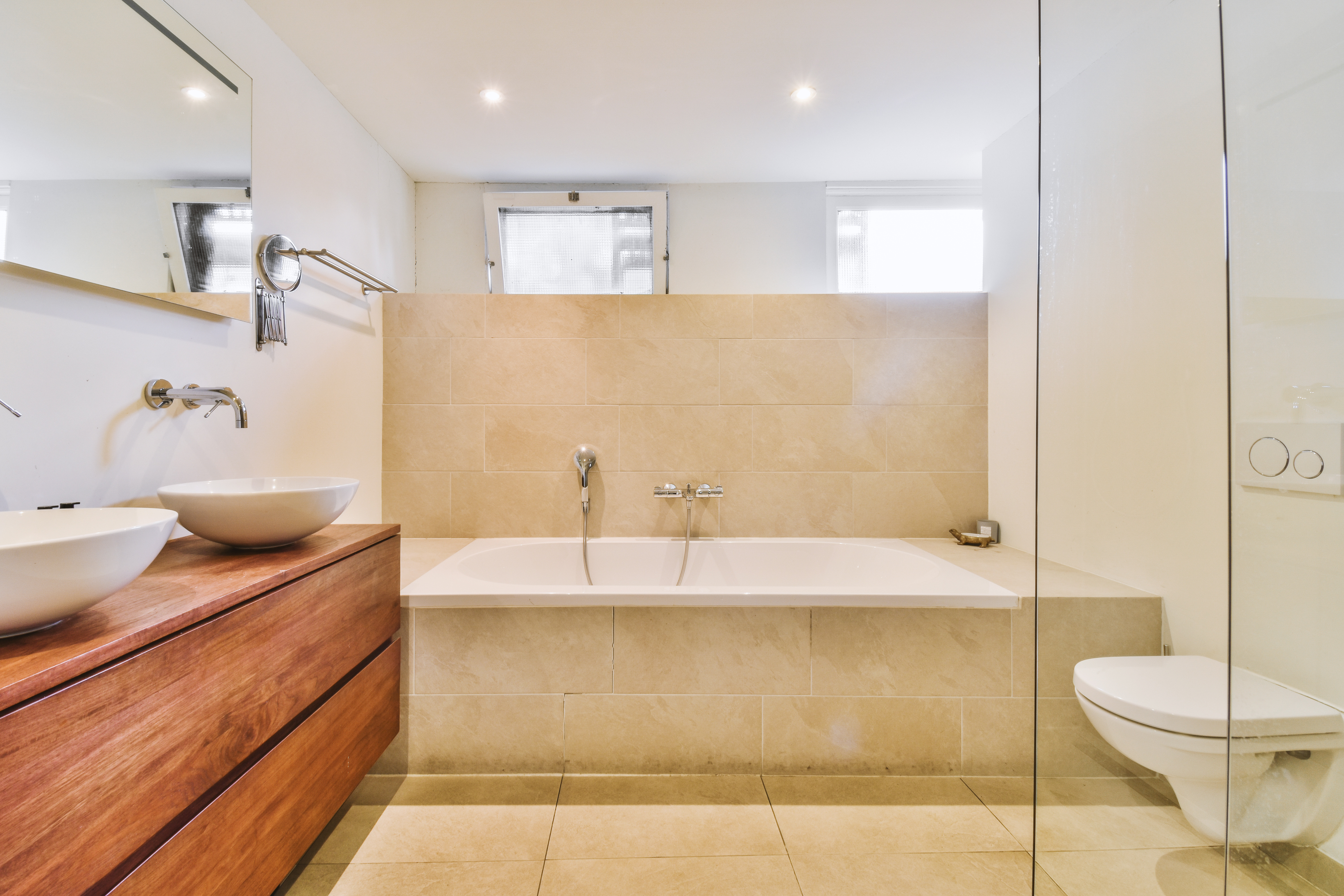 Ammeen peittäminen luonnonkivellä tai komposiittilevyillä lisää kylpyhuoneen ylellisyyttä. Kivi ja komposiitit ovat erittäin kestäviä ja kosteudenkestäviä, mikä tekee niistä ihanteellisia kylpyhuoneeseen.