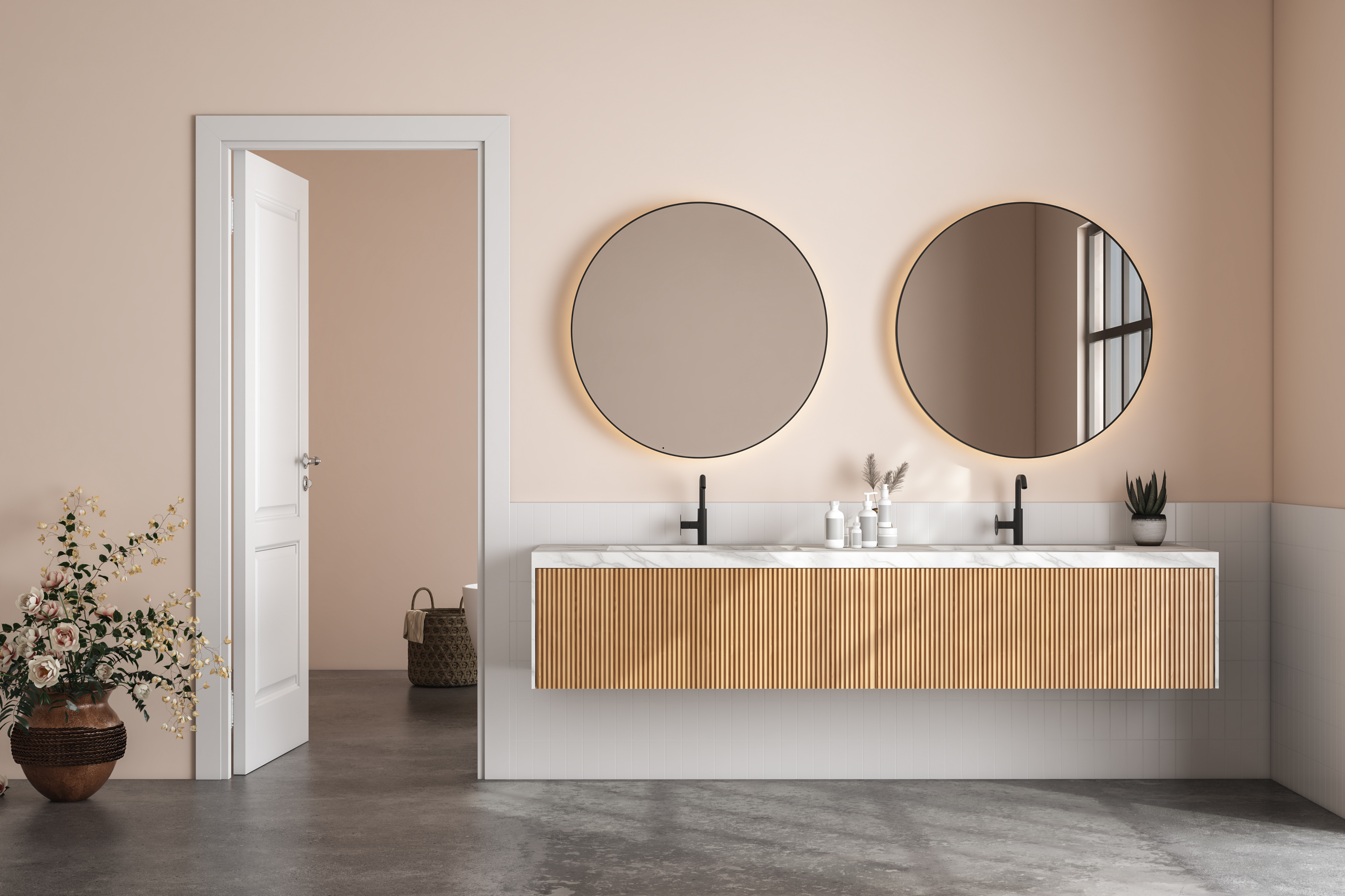 - Kiinnitä huomiota valaistukseen – LED-peilit parantavat toimivuutta ja antavat sisustukselle modernia ilmettä.