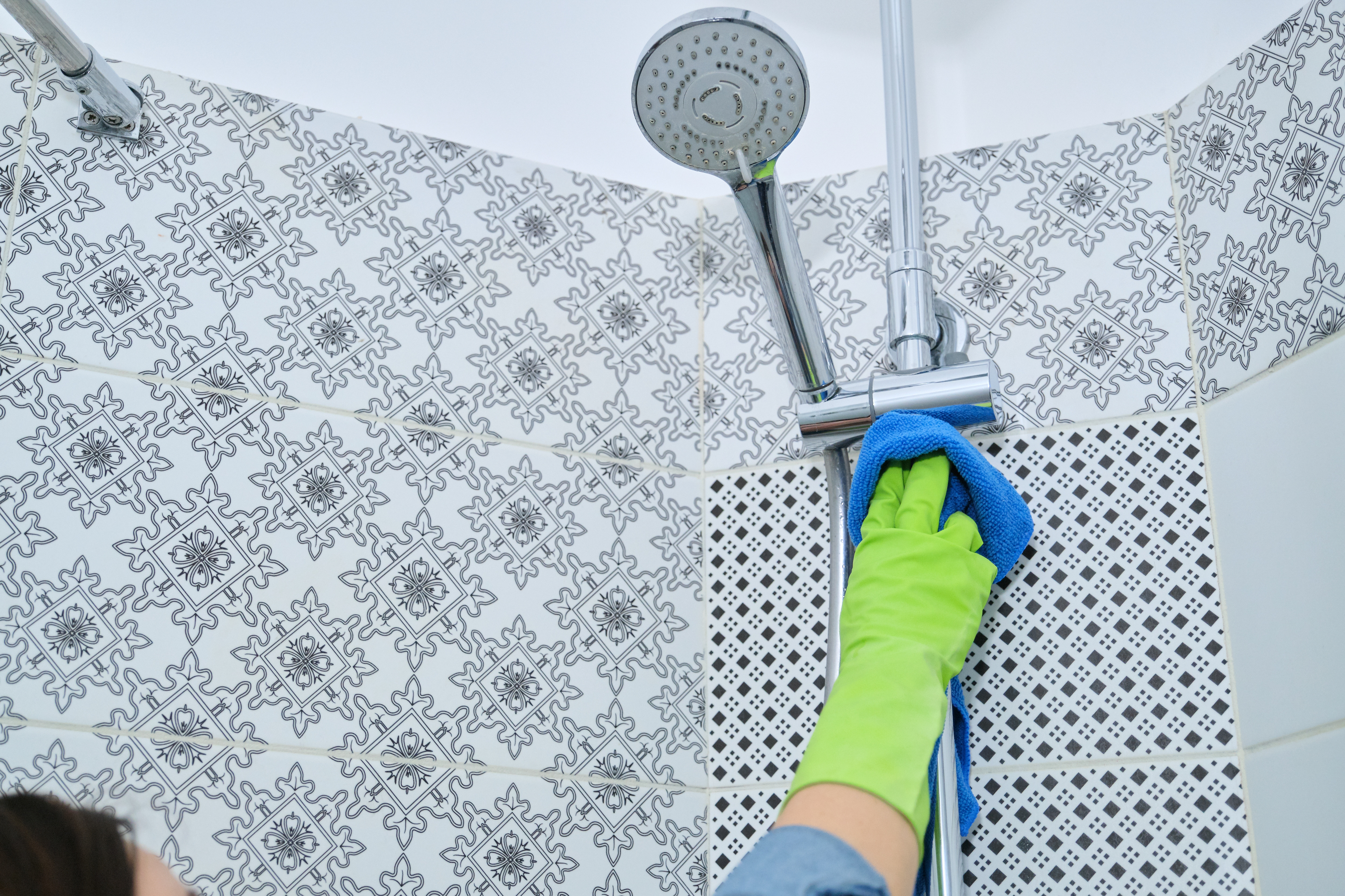 Huuhtele suihkupää lämpimällä vedellä ja kuivaa, jotta uusia jälkiä ei pääse muodostumaan.